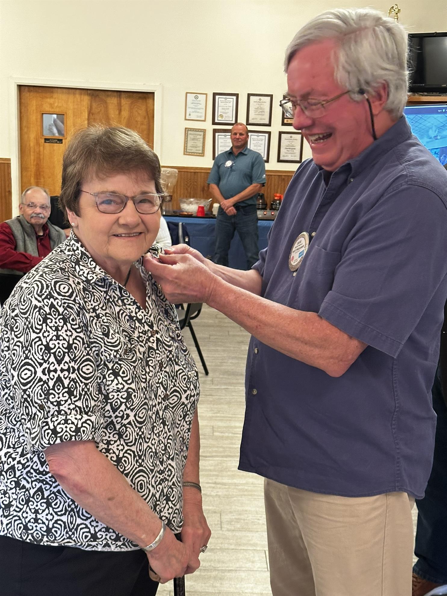 PDG Dave Hannan recognized Sue Colacino and Russ Harris as multiple Paul Harris Fellows. In addition to making contributions to the Rotary Foundation, they are also actively involved in serving the community.